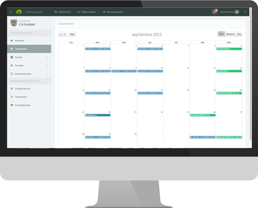 Con Training Cloud puedes hacer toda la gestión del equipo: entrenamientos, partidos, plantilla, cuerpo técnico...
